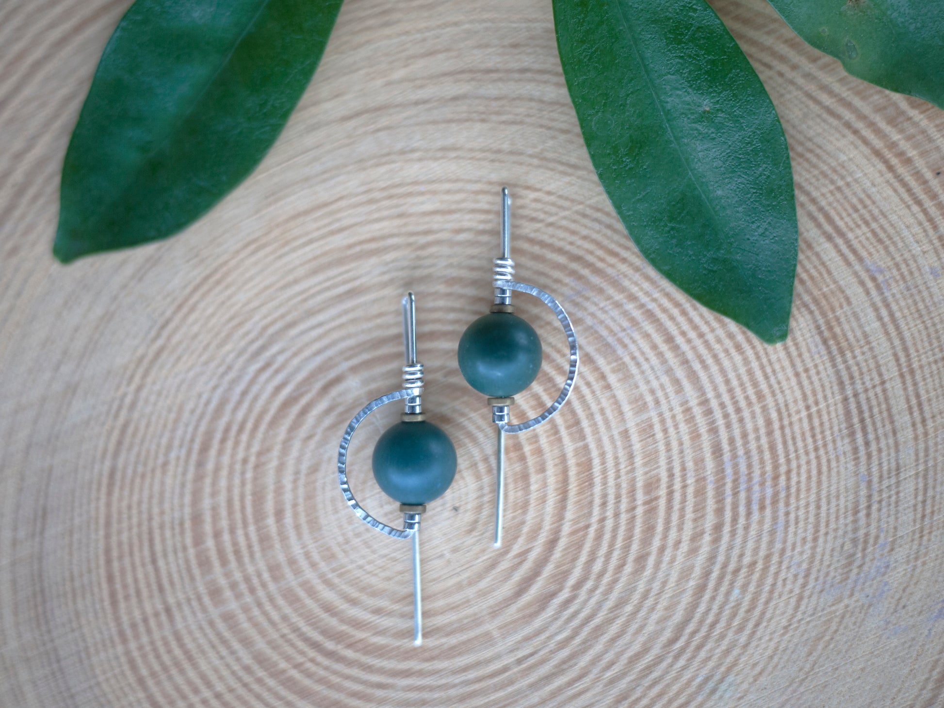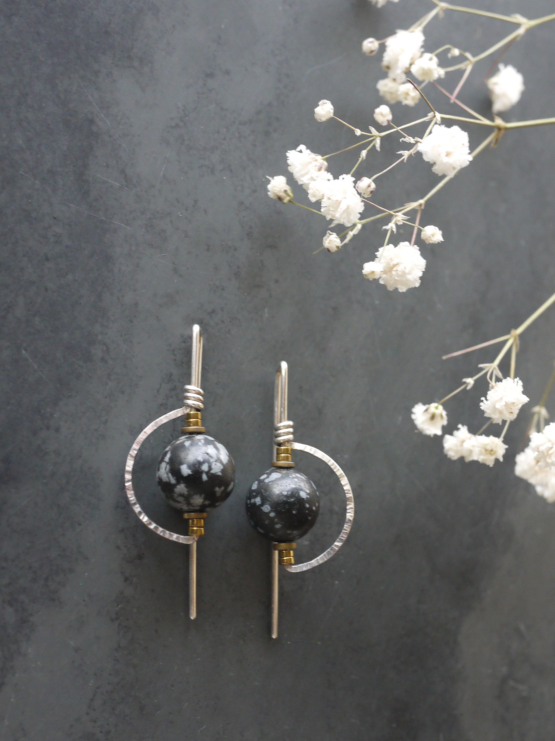Made from sterling Silver or gold fill wire, tiny hematite beads and semi-precious stone beads. The wire has portions that are hammered to give the earring a unique combo of texture and smooth.