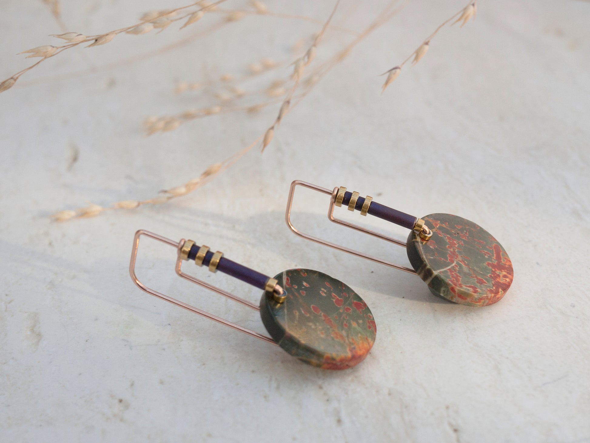 Minimal Red Creek Jasper Drop Earrings #2